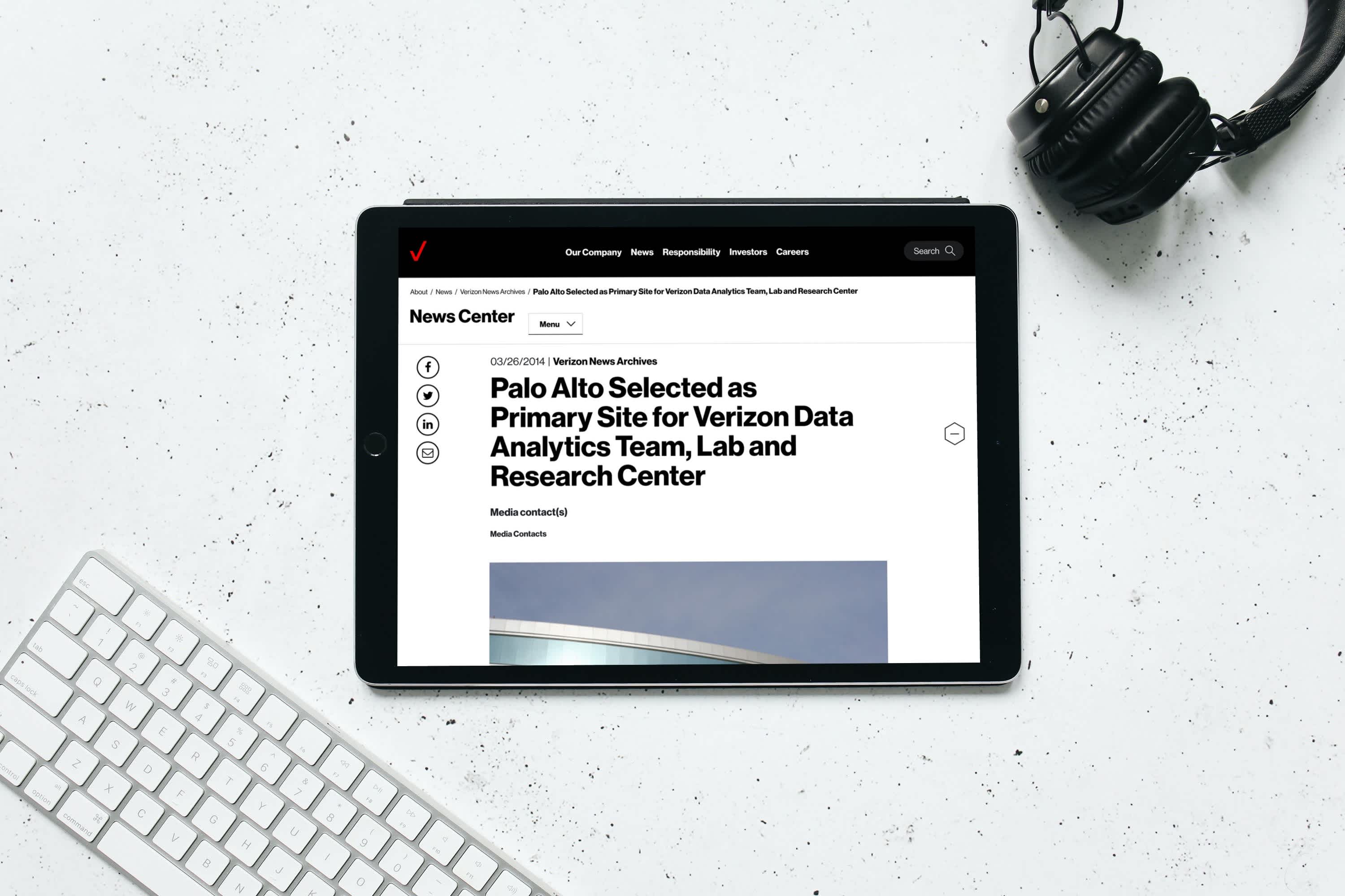 Palo Alto Selected as Primary Site for Verizon Data Analytics Team, Lab and Research Center